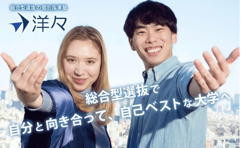 洋々は、総合型選抜・学校推薦型選抜に特化した個別指導塾です。一人ひとりの状況や志望校に合わせて最適な対策を行う「完全個別指導」を強みとしており、受験生の現状と合格に必要なレベルとの差を分析し、効率的に力を伸ばしていきます。志望大学・学部選びの段階からサポートが受けられる点も特徴です。単に偏差値で進路を決めるのではなく、受験生の価値観や将来像を踏まえた「自分に合った進路」を重視し、納得感のある受験戦略を立てることができます。また、志望理由書や自己推薦書といった出願書類の作成から、小論文、面接、プレゼンテーション対策まで、総合型選抜に必要な要素を一貫して指導します。特に小論文対策では、単なる型やテクニックではなく、「考える力」「伝える力」といった本質的な能力の育成に重点を置いている点が魅力です。さらに、マンツーマン指導に加えてメンターサポートや柔軟なスケジュール設計が可能なため、学校生活と両立しながら効率よく対策を進めることができます。総合型選抜で求められる「総合力」をバランスよく伸ばしたい方にとって、非常に適した塾といえるでしょう。